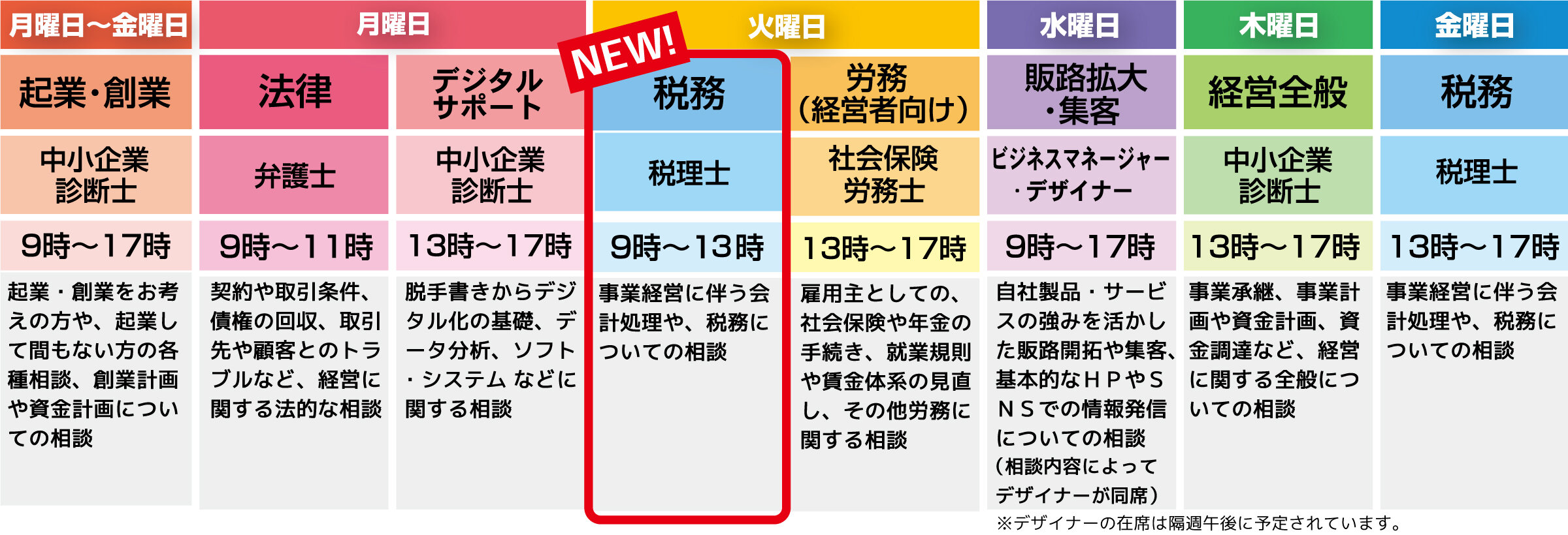 令和5年7月~令和6年3月の期間、「税務相談」枠を拡充します。これまでの【金曜午後】の4枠に加えて【…
